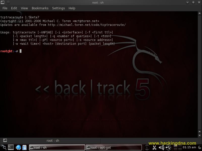 - BackTrack > Information Gathering > Network Analysis > Route Analysis > tcptraceroute